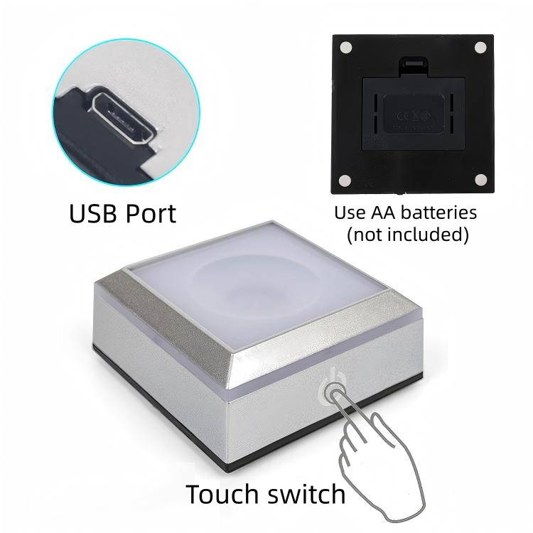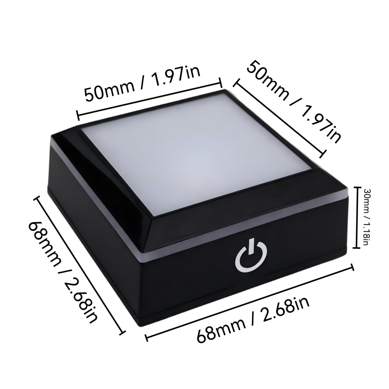 1、Size of Plastic Light Base: 2.68 x 2.68 x 1.18 inches, Top Surface Size: 1.97 x 1.97 inches.